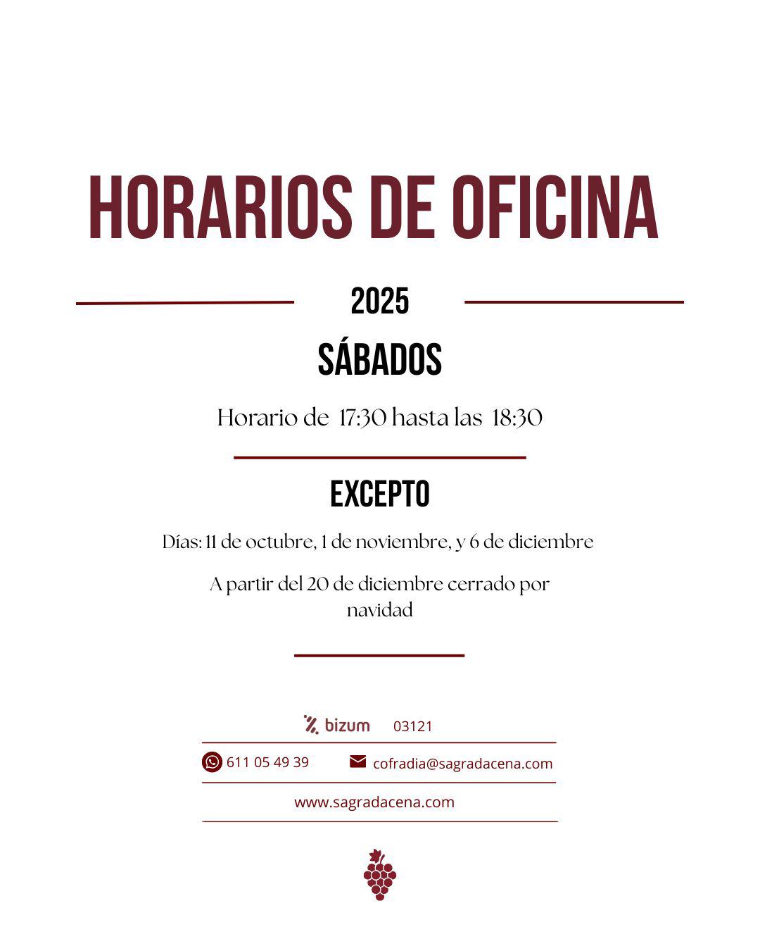 Este sábado 4 de octubre retomamos la actividad con la apertura de la oficina, el horario de 17:30h a 18:30h. En la sede de la cofradía, cruzando el patio por las escaleras que suben al lado de la sacristía. Se podrá hacer la devolución al banco de hábitos los días 4 y 18 de octubre, pudiendo recuperar la fianza al completo. Todo hábito que sea entregado después de estas fechas no recibirá la fianza depositada.